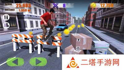 2. 多样的地图场景:游戏中有多个地图场景,包括城市街道、屋顶、公园等,每个场景都有独特的障碍和道具,让玩家体验不同的滑板挑战。
