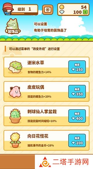 4. 装饰鱼池:玩家可以使用各种装饰品来装饰主画面的鱼池,打造个性化的水族馆。