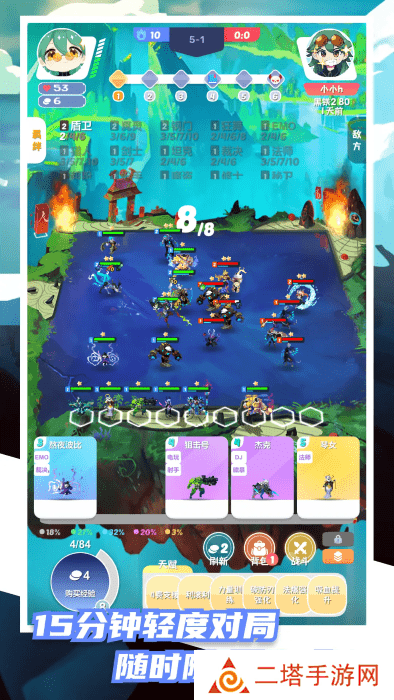 4. 进行对战:在对战开始前,玩家需要选择合适的羁绊和英雄进行搭配,然后与其他玩家进行对战,通过策略布局和英雄技能释放来取得胜利。