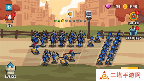 2. 招募士兵:玩家可以通过招募营招募各种不同类型的士兵,包括步兵、弓箭手、骑士等,并通过升级提升他们的实力。