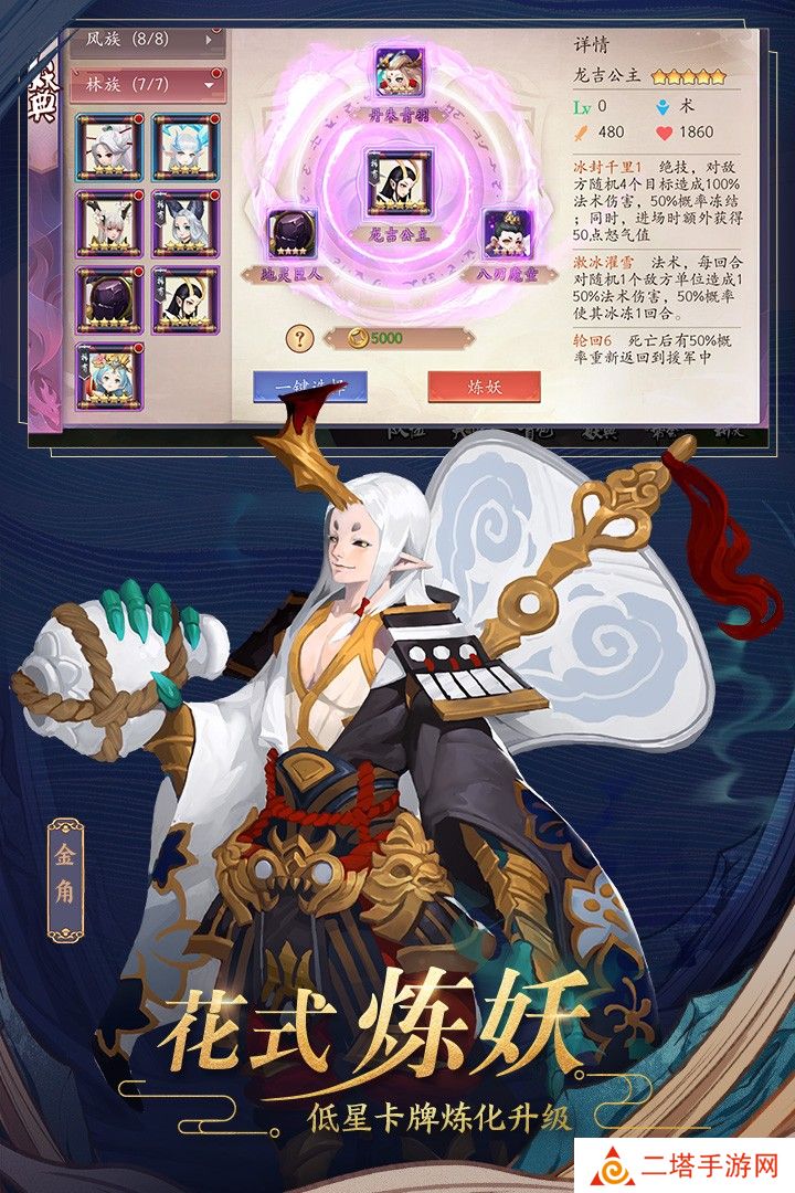 4. 阵容搭配:游戏中的妖怪卡牌有着不同的属性和技能,玩家需要根据战斗需求进行合理的阵容搭配。不同的阵容搭配会产生不同的战斗效果,增加了游戏的策略性。