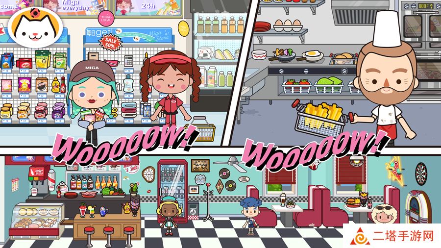 Miga World(米加小镇世界国际服)是一款模拟经营类游戏,以其精美的卡通风格、高度自由的沙盒建造和丰富的任务挑战而闻名。在这个自由开放的小城市中,玩家可以随心所欲地建设、装饰和布置自己的公寓和城镇,体验成为小镇市长的乐趣。游戏画面色彩鲜艳,人物造型可爱,场景设计充满童趣,为玩家营造了一个温馨、舒适的游戏世界。