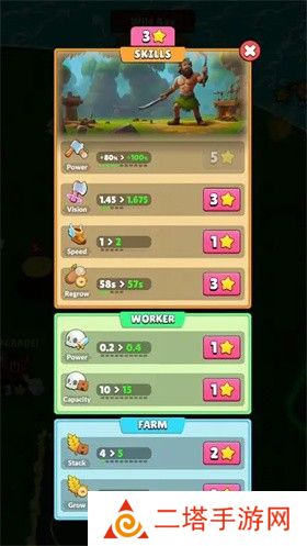 3. 技能提升:游戏提供丰富的技能类型,玩家可以升级战斗、速度以及等级,快速提升整体实力。