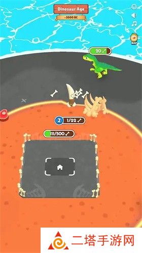 1. 时代背景:游戏从侏罗纪开始,随着时代的前进,工具将会不断进化,玩家将获得丰厚的资源奖励。