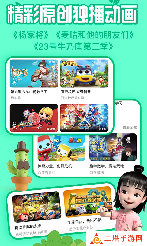 3、精彩原创独播动画,《杨家将》 《麦咭和他的朋友们》《23号牛乃唐第二季》。