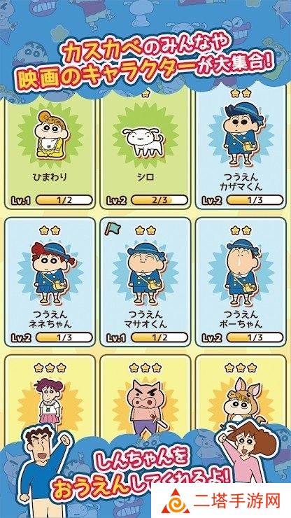 1. 丰富的角色系统:游戏中不仅有蜡笔小新本人,还有他的家人和春日部防卫队的朋友们,每个角色都有独特的技能和外观,增加了游戏的可玩性和趣味性。