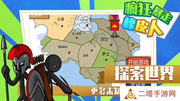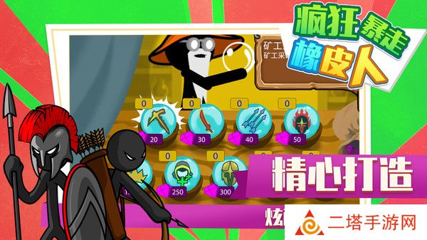 疯狂暴走橡皮人是一款融合了策略与动作冒险元素的火柴人题材游戏。玩家将扮演一名指挥官,招募并指挥各种火柴人士兵进行战斗,通过灵活布局战术和搭配不同战士职业,来赢得战争的胜利。游戏画面卡通风格鲜明,玩法多样,充满挑战。