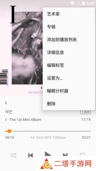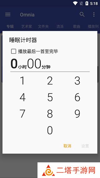 5、点击右上角的按钮可对歌曲进行设置,或进行睡觉计时器;