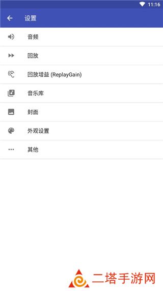3、点击最下方的设置进入,在这里,用户设置音频、回放、音乐库,以及外观等;