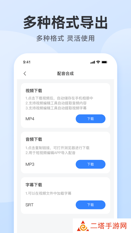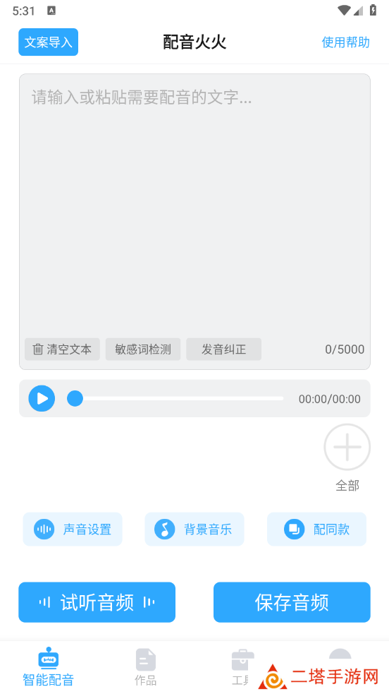 智能配音:1.文字秒变语音,有上百种声音可以挑选2.支持音量、音调、语速、情绪的调节,随播随停3.可以对多音字进行发音纠正,选择正确的读音真人配音:老师专业、经验丰富、风格多样,可以满足您的所有配音需求文案模板:美食餐饮、超市烟酒等众多行业模板任您选择海量背景音乐:含有短视频热门、广告促销、轻音乐等各种背景音乐,也支持本地音乐导入多功能音频工具箱:支持音频剪辑、格式转换、音频变声、音频编辑等多种功能一键导出分享软件:制作的音频文件可以保存到本地,也可以一键分享给他人