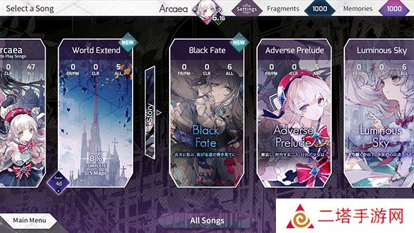 3. 货币系统:游戏中有两种货币,残片和记忆源点。残片用于购买歌曲和解锁世界模式中的阶梯,通过普通模式下打歌获得;记忆源点用于购买付费曲包和单曲,需要氪金获得。