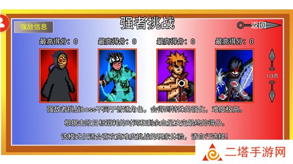 1. 角色选择:玩家可以在游戏开始前选择自己喜欢的忍者角色进行战斗。每个角色都有独特的技能和战斗风格,玩家需要根据自己的喜好和游戏需求选择合适的角色。