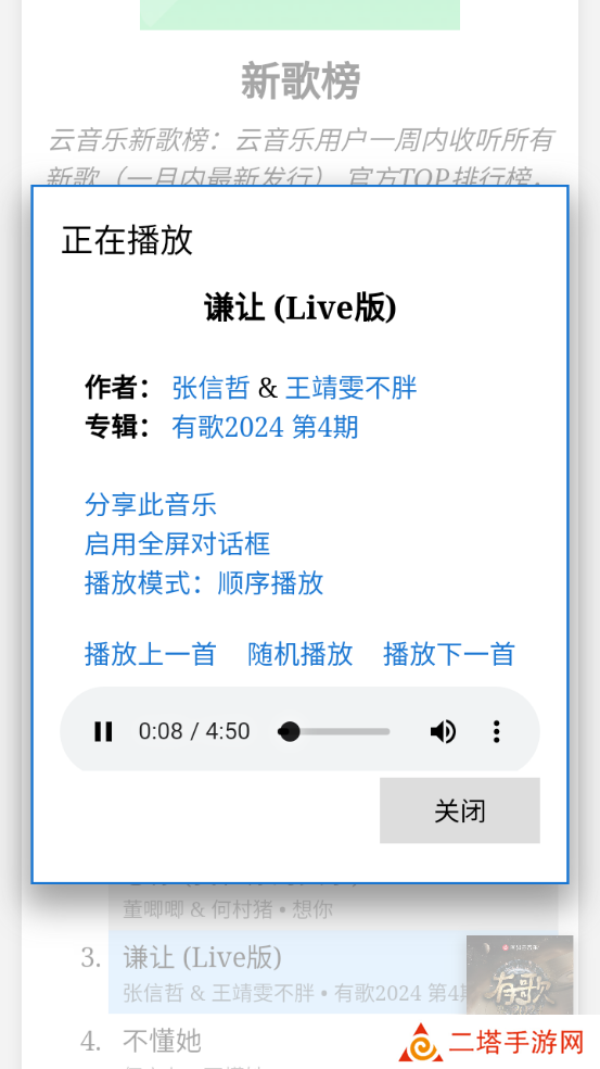 2.点击音乐进行播放,然后点击旁边的拓展内容