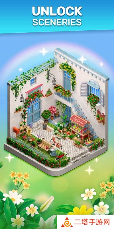 3. 自由度高:玩家可以自由设计花园的布局,选择喜欢的植物和装饰品进行搭配,创造出属于自己的瓷砖花园。
