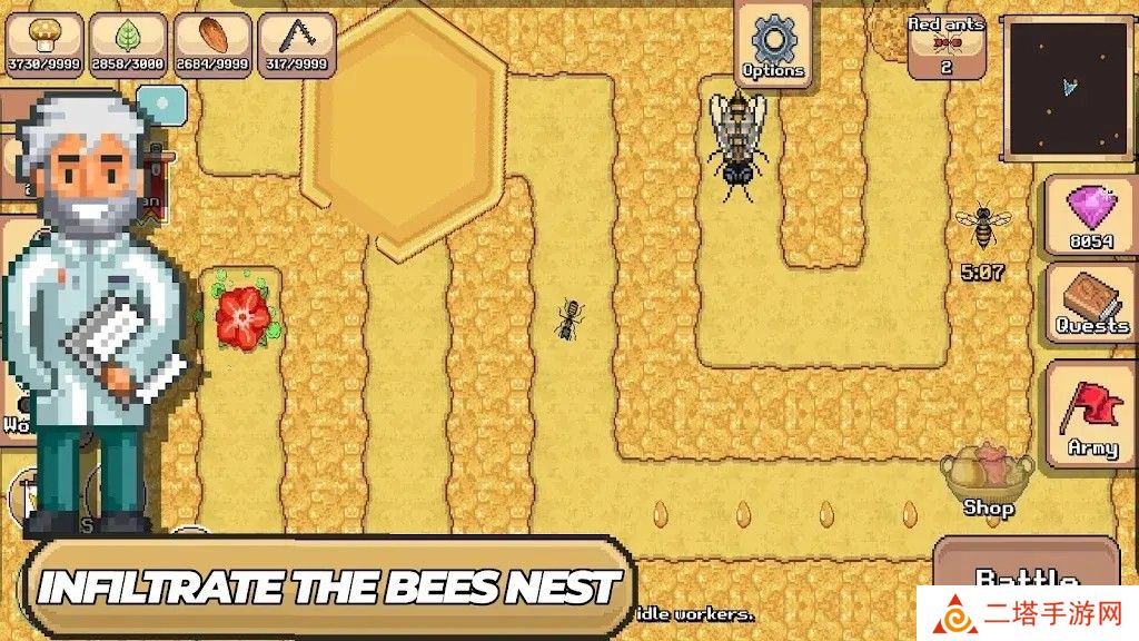 1. 真实模拟体验:游戏采用了逼真的像素画风,从食物、季节到天敌的种类都进行了细致的模拟,让玩家能够身临其境地感受蚂蚁的生活。
