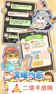 3. 员工管理与团队协作:玩家需要管理一群可爱的仓鼠员工,包括服务员鼠、主管鼠等,处理他们的烦恼和离职申请,确保商业街的正常运营。