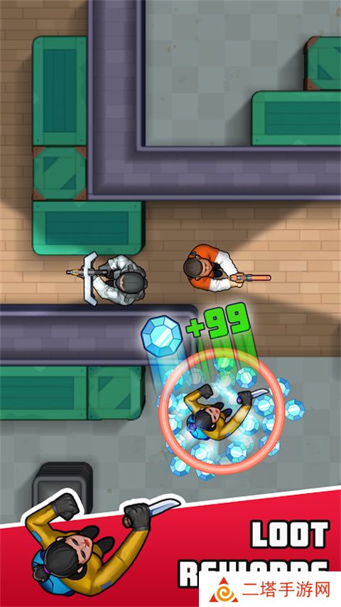 3. 收集钻石与宝石:游戏中可以收集钻石和宝石,用于购买新的角色、装备或提升角色能力。玩家需要巧妙利用走位和隐藏设备,在不被敌人发现的情况下收集这些奖励。
