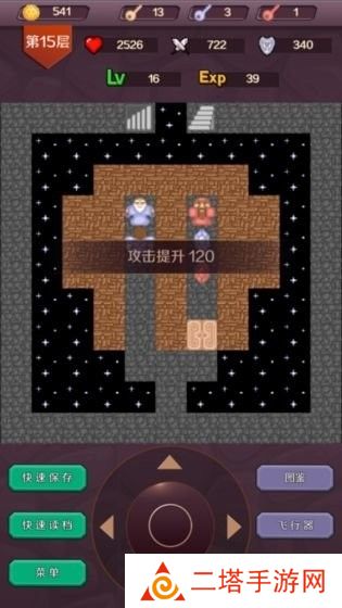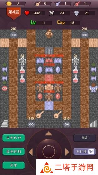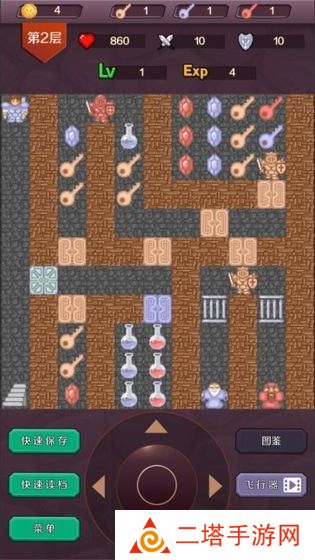 3. 游戏界面:游戏界面包括地图、角色信息、怪物信息、道具栏等部分。玩家可以通过地图查看当前楼层和通往其他楼层的路径,通过角色信息查看当前角色的属性,通过怪物信息了解怪物的属性和战斗方式,通过道具栏使用各种道具。