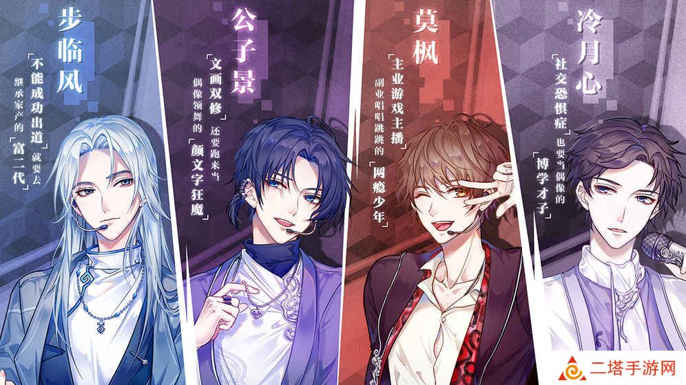 1. 游戏背景:游戏设定在一个充满梦想与挑战的娱乐圈,玩家需要面对四位个性迥异的男主,他们分别是步临风、冷月心、莫枫和公子景。他们因某种原因失去了记忆,玩家需要帮助他们找回记忆,并带领他们走向成功。