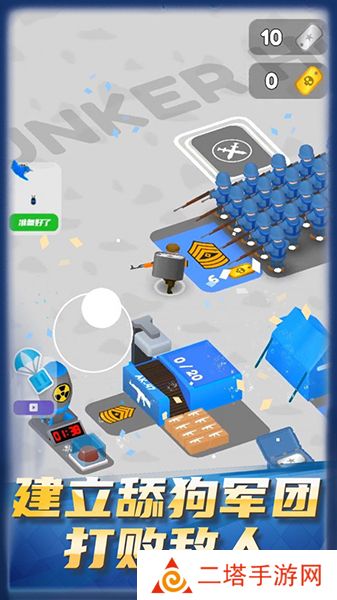 1. 招募士兵与组建军团:玩家需要在游戏中招募不同种类的士兵,包括步兵、坦克、飞机等,组建自己的舔狗军团。