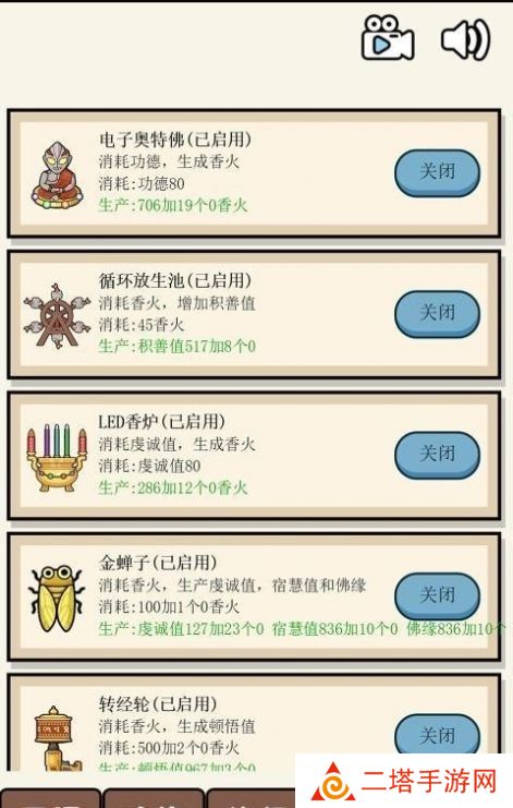 4. 使用道具:游戏中提供了多种道具,如加速修行速度的道具、增加功德值的道具等。玩家可以通过解锁或购买这些道具,来提升自己的修行效率和功德积累速度。