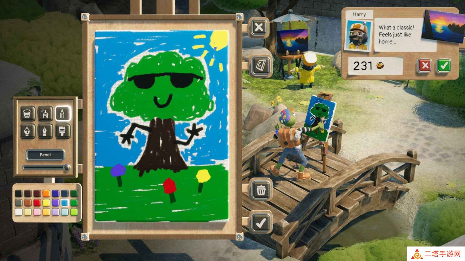 1. 绘画创作:玩家可以使用便利的可折叠画架,在小镇的街头或工作室中创作画作。随着游戏的进行,玩家可以解锁更多高级的画具和颜料,提升画作质量。