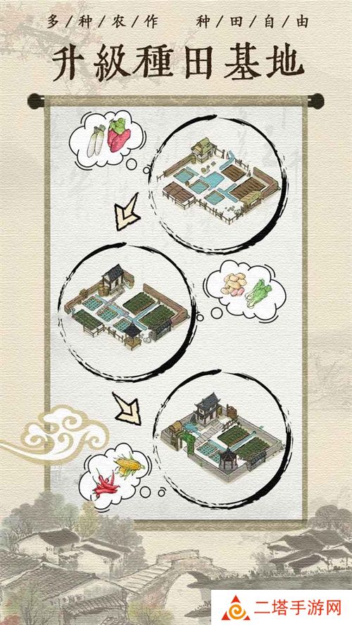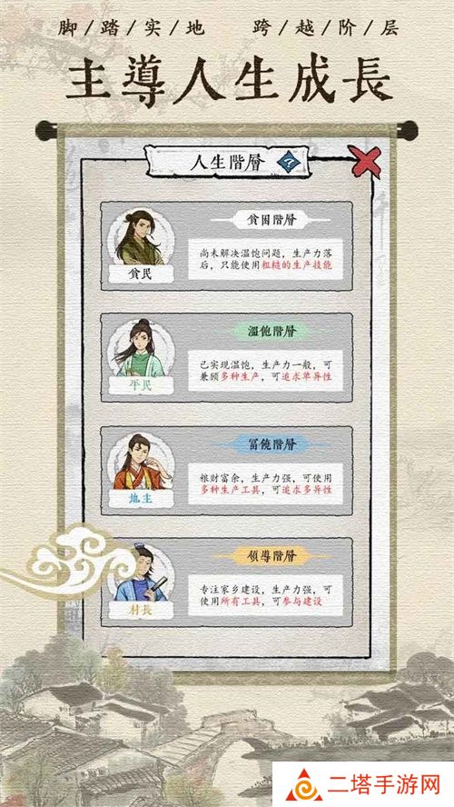 1. 游戏背景:设定在一个风景如画的古代乡村,玩家需要适应乡村的生活方式,逐步发展自己的产业。