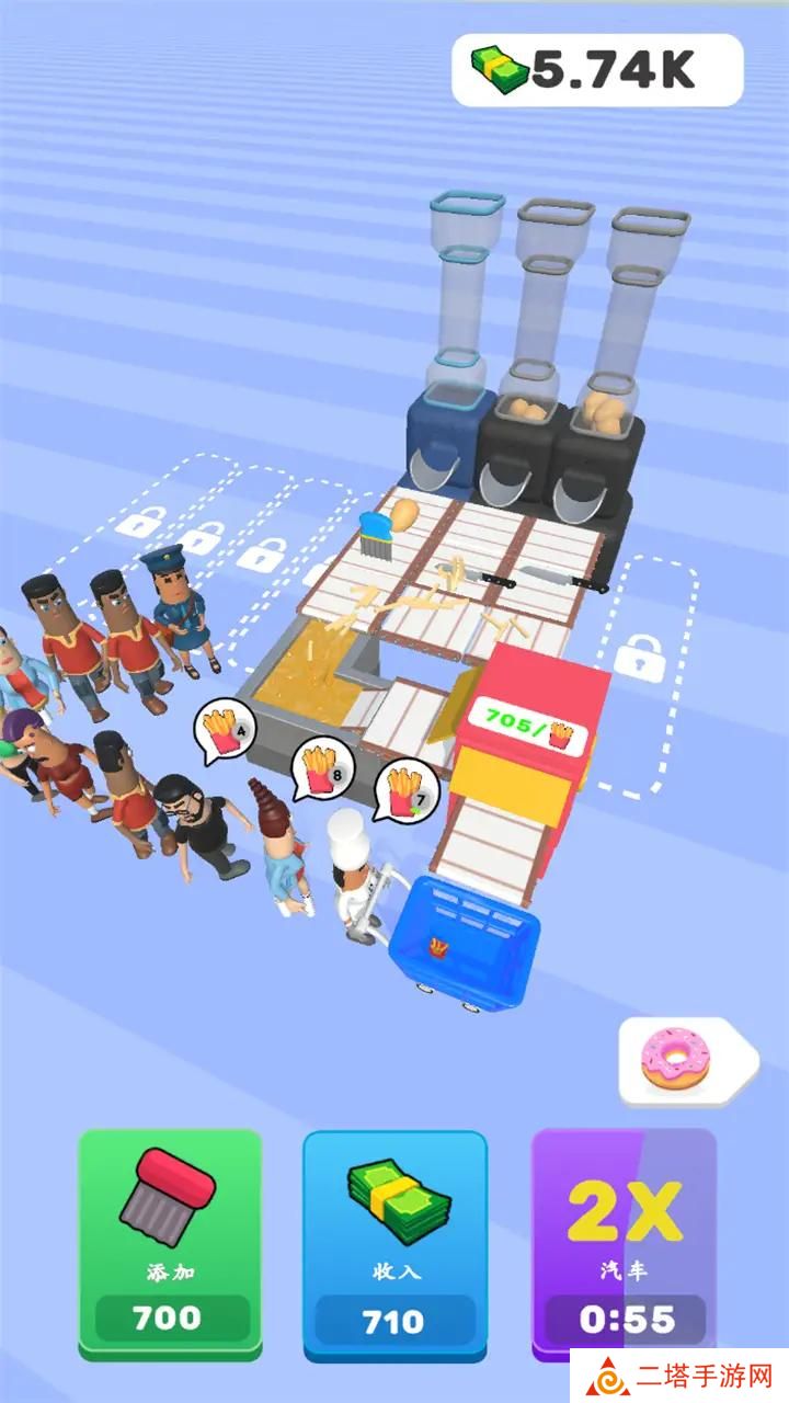 3. 学习制作:玩家需要学习如何制作美味的薯条,包括选择马铃薯、切割、油炸等步骤,并根据市场需求调整口味和配方。