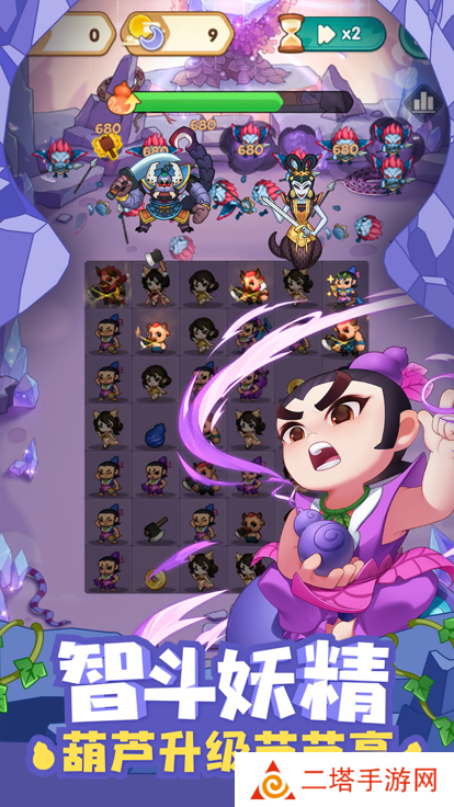 《葫芦娃大作战》是一款由经典国创IP《葫芦兄弟》正版授权的国风塔防合成手游。游戏创新性地融合了三消合成、塔防和Roguelike技能升级,为玩家带来全新的游戏体验。玩家将化身为一名指挥官,通过棋盘合成的方式来提升英雄的战斗力,跟随原著动画的故事线,抵抗妖魔的一波又一波攻击浪潮,拯救**和小伙伴。