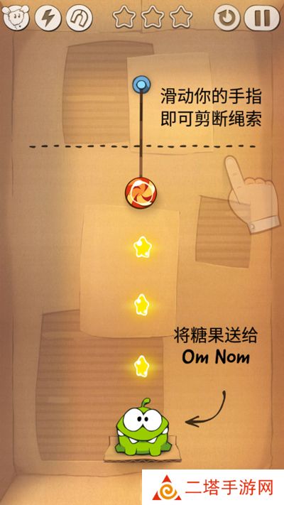 2. 掌握时机:割绳子的时机至关重要,玩家需要等待糖果摆动到合适的位置再动手,以确保糖果能够准确地落入Om Nom的嘴边。
