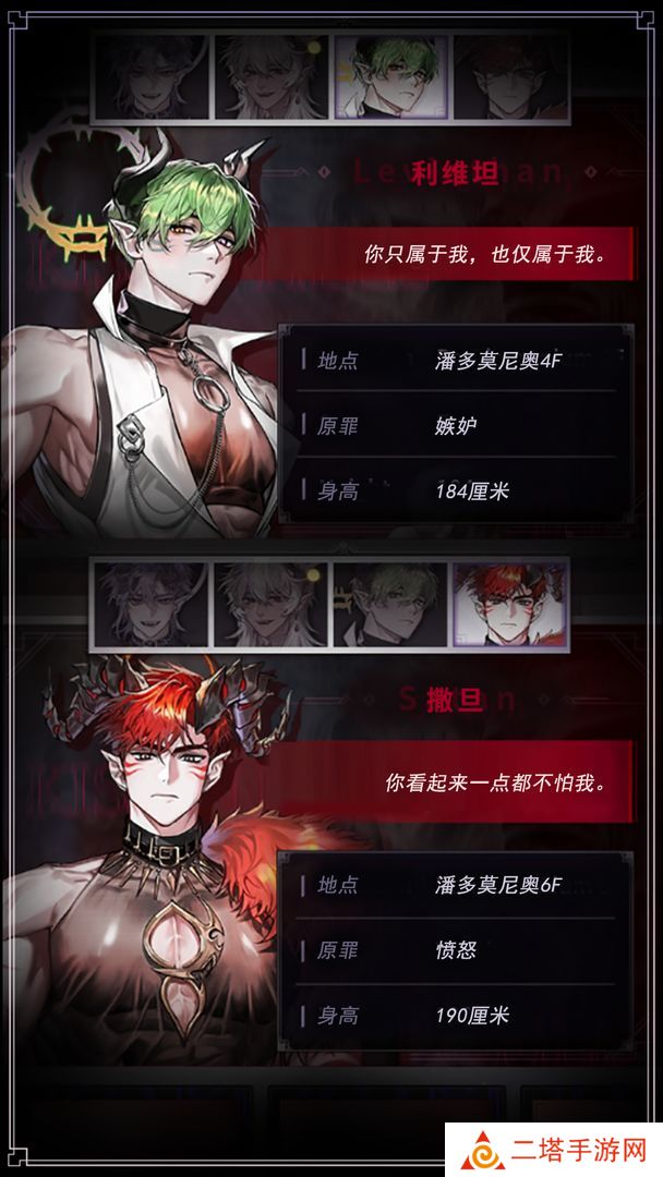 2. 角色设定:游戏中有多个鲜明的角色,包括贪婪魔王玛门、贪心魔王阿斯莫蒂斯、嫉妒魔王利维坦和愤怒魔王撒旦,每个角色都有独特的性格和背景故事。
