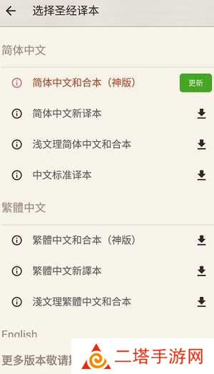 提供圣经译本的选择功能。