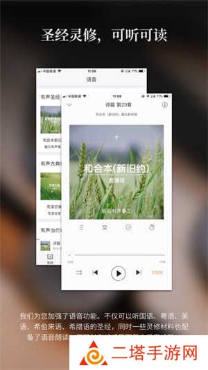 3、听书功能:软件还提供圣经听书功能,边听边阅读,方便用户多任务操作。