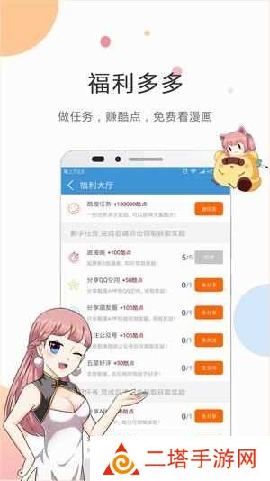 1、触手漫画app——有专门给漫迷们推出的最热门的,最in的二次元福利直通安全通道,每星期指定送出去,这里只有漫迷才知道的动画世界,会来添加么?2、触手漫画app——手机漫画免费阅读器。大量漫画在线本地下载阅读文章免费在线观看,精彩文章与官方网站实时同步,并及时发现,帮助你演变成漫画大咖~3、触手漫画app——一**漫画作品已经接近中,打开手机,将它们统统收入囊中吧!4、触手漫画app——送给漫迷的手机漫画福利~和睦没死,游戏娱乐不仅,在漫画和睦泛滥的社会发展,起码能有这样一只喵星人,与你一起在二次元漫画世界里开心玩耍!