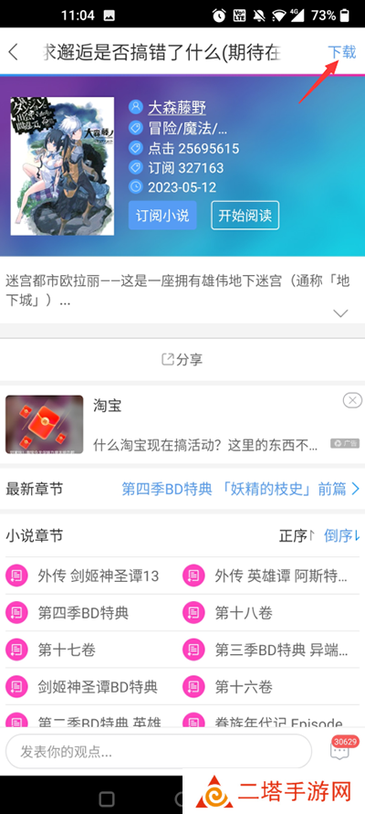 动漫之家2024最新版本怎么下载小说1、找到《轻小说》功能栏里,点击进去找到自己想要下载的小说。