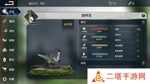 2. 创建角色:首次进入游戏,玩家需要创建自己的恐龙角色,并选择初始超能力。