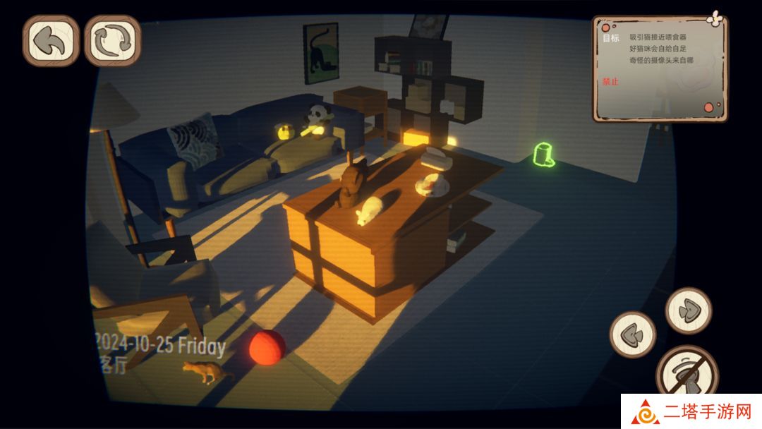 2. 操作方式:通过点击和拖拽等简单操作,与猫咪互动、布置小屋、种植食物等。