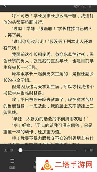 4.在下方就能够看见“下一章”的功能,我们可以快速的切换小说的下一章进行阅读。