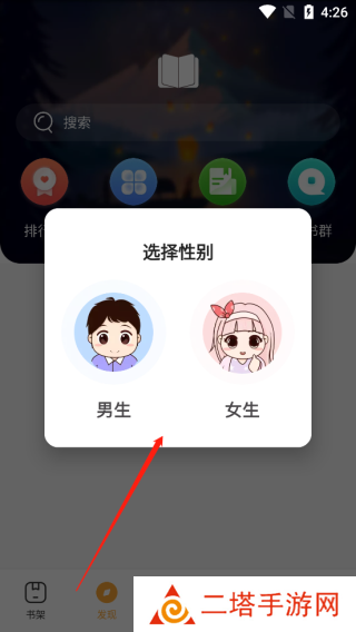 墨香阁app怎么搜书1、从当快下载墨香阁app,打开进入,会有性别弹窗,点击选择即可
