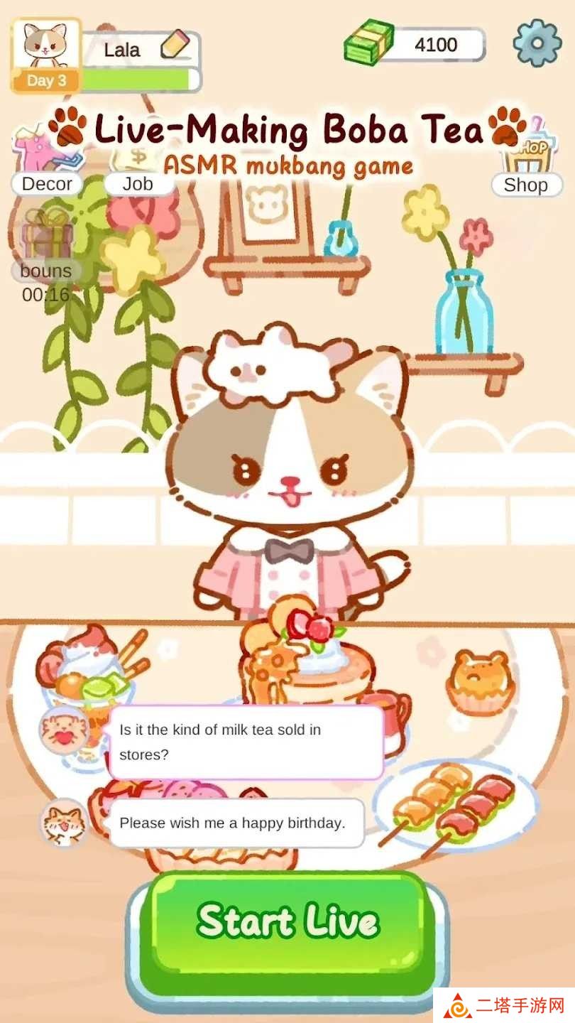 2. 玩法多样:游戏不仅提供了制作奶茶的基本玩法,还加入了直播互动、任务挑战等多种元素,丰富了游戏体验。