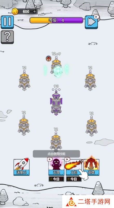 5. 游戏音效与暂停:界面右上角有2个小图标,左边用于暂停游戏并进入系统菜单,右边用于打开/关闭游戏音效。