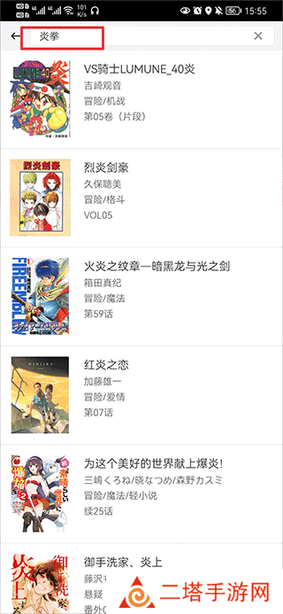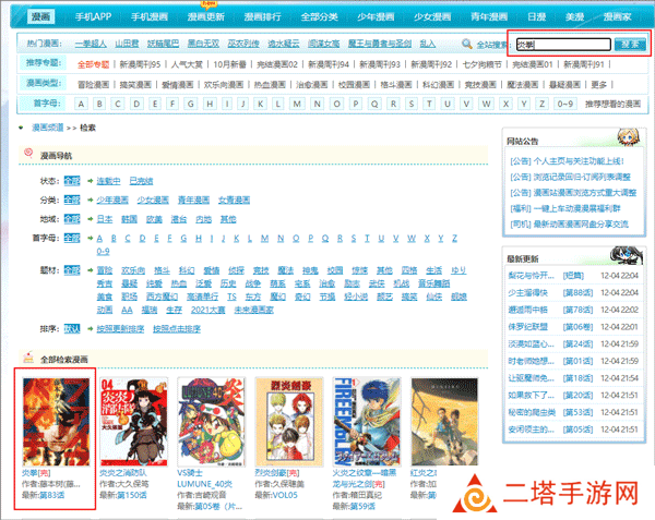2、打开动漫之家官方网站,在搜索框中输入漫画名称,如炎拳,然后在下方全部搜索漫画中点击炎拳