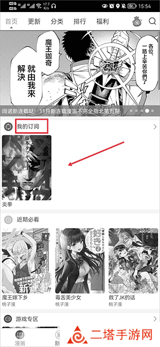 4、完成订阅后,返回动漫之家app,然后在漫画界面中就可以看到我的订阅的漫画啦