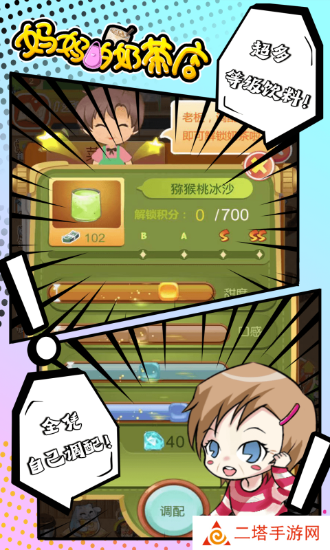 妈**奶茶店是一款温馨有趣的模拟经营小游戏,玩家将扮演一位年轻的创业者,继承并经营妈妈留下的奶茶店。在游戏中,你需要学习制作各种口味的奶茶,满足不同顾客的需求,逐渐扩大店铺规模,将小小的奶茶店发展成知名连锁品牌。