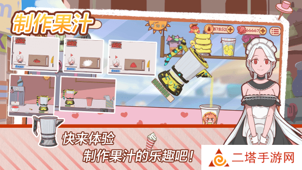 1. 丰富的果汁制作:游戏提供了多种食谱和配方,玩家可以尝试不同口味的果汁制作,创造出独特的口感和味道,以此来吸引更多的客人。