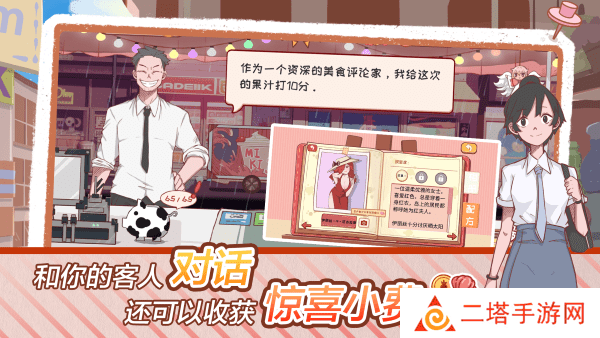 2. 店铺装修系统:游戏提供了丰富的装饰物品和风格选择,玩家可以根据自己的喜好来设计独一无二的果汁店,打造独特的店内氛围。