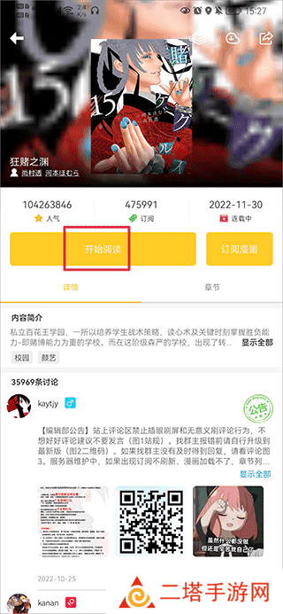 2、在漫画介绍界面中点击开始阅读
