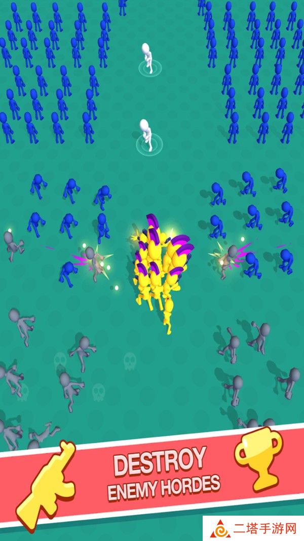 2. 开始冒险:玩家独自奔跑在战场上,不断收集新的战士,同时躲避敌人的攻击。