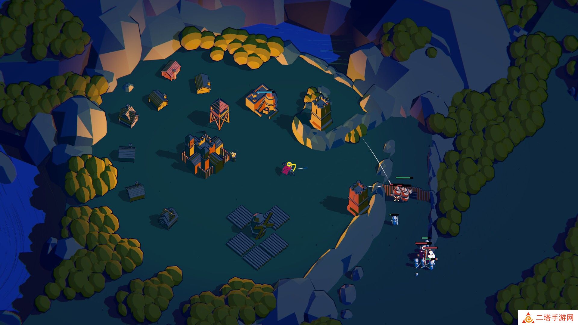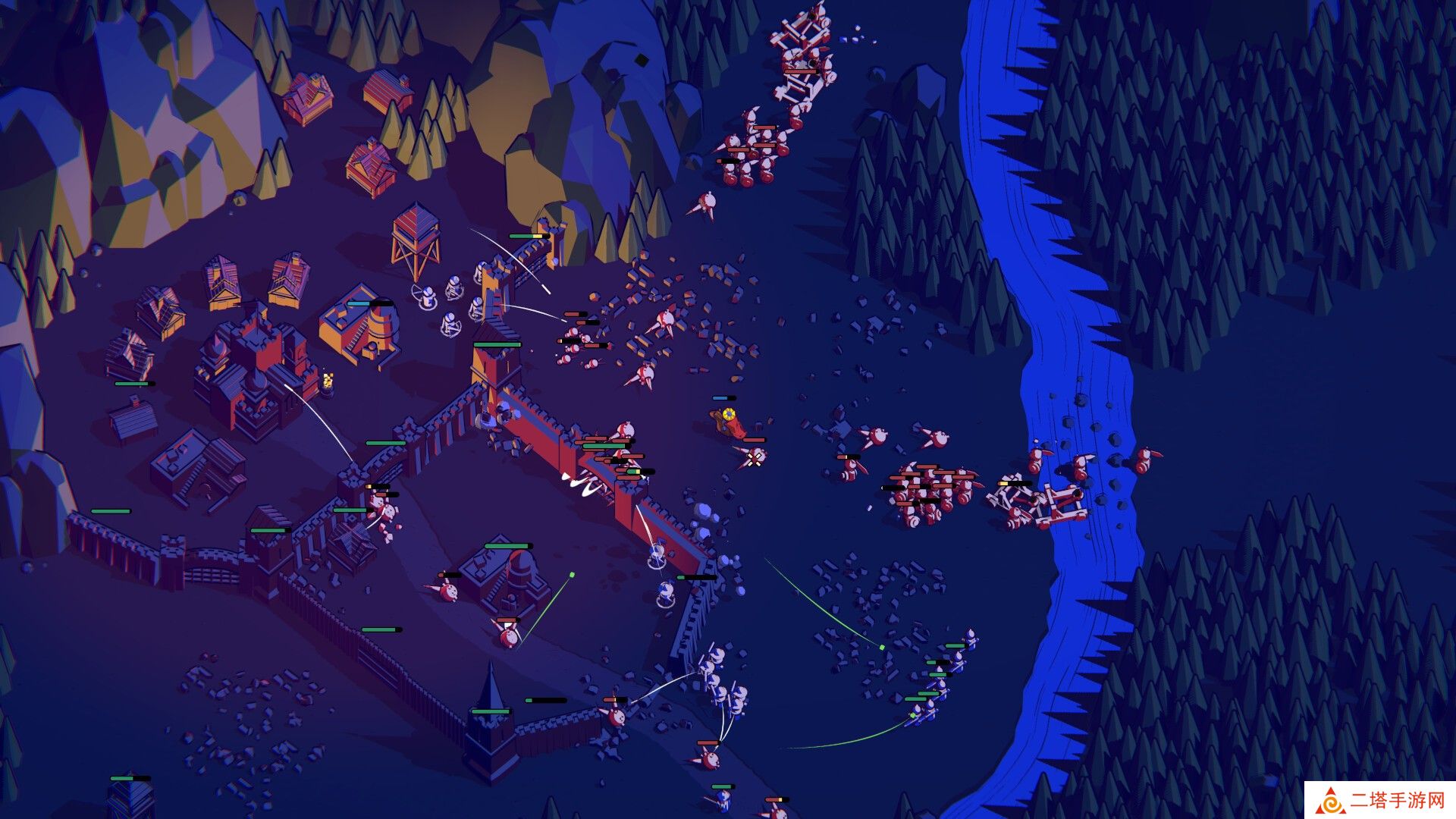 2. 策略防御与进攻:游戏分为白天与夜晚两个阶段。白天建设,夜晚则面临敌人的进攻。玩家需要制定有效的战术,利用地形和障碍物,以及防御塔和士兵的组合,抵御敌人的进攻。