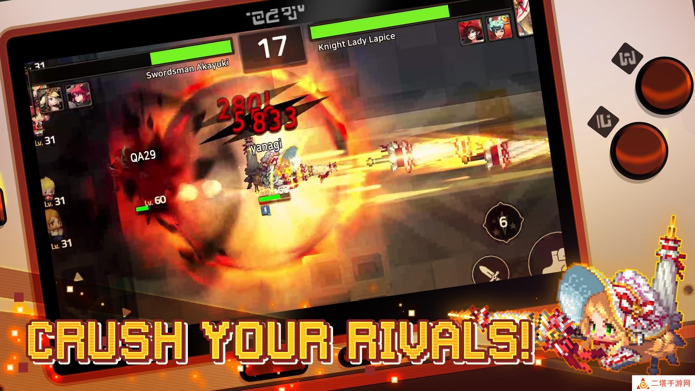 《冒险守护者之战》(Guardian Tales)是一款像素风格的2D动作角色扮演地牢冒险游戏。玩家将在一个剑与魔法的奇幻世界中扮演勇者,在各种不同的地牢中进行冒险,与各种各样的魔物战斗,获取素材和装备。游戏融合了冒险、动作和角色扮演元素,为玩家带来一场刺激的奇幻之旅。